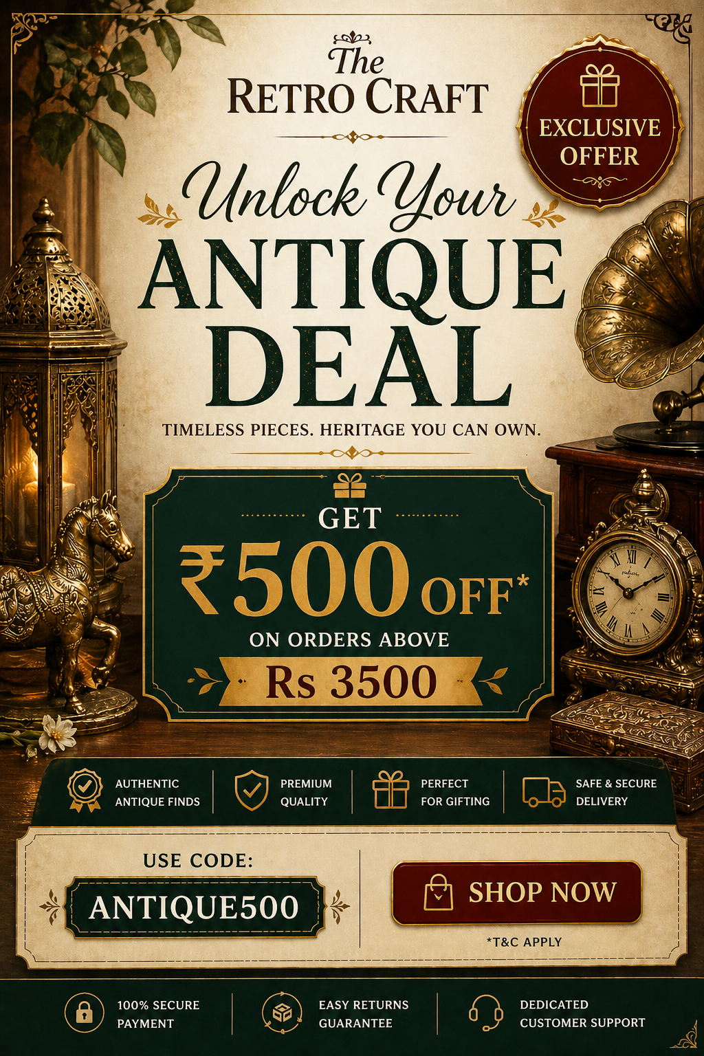 The Retro Craft – a perfect window for antique, brass & home decor items which are uniquely different from the regular decorative articles. Give the best of the gifts to your loved ones leaving an indelible mark on whoever you gift. We serve you with out of the box ideas in decoration be it at home or office, maintaining the aesthetic and artistic touch.